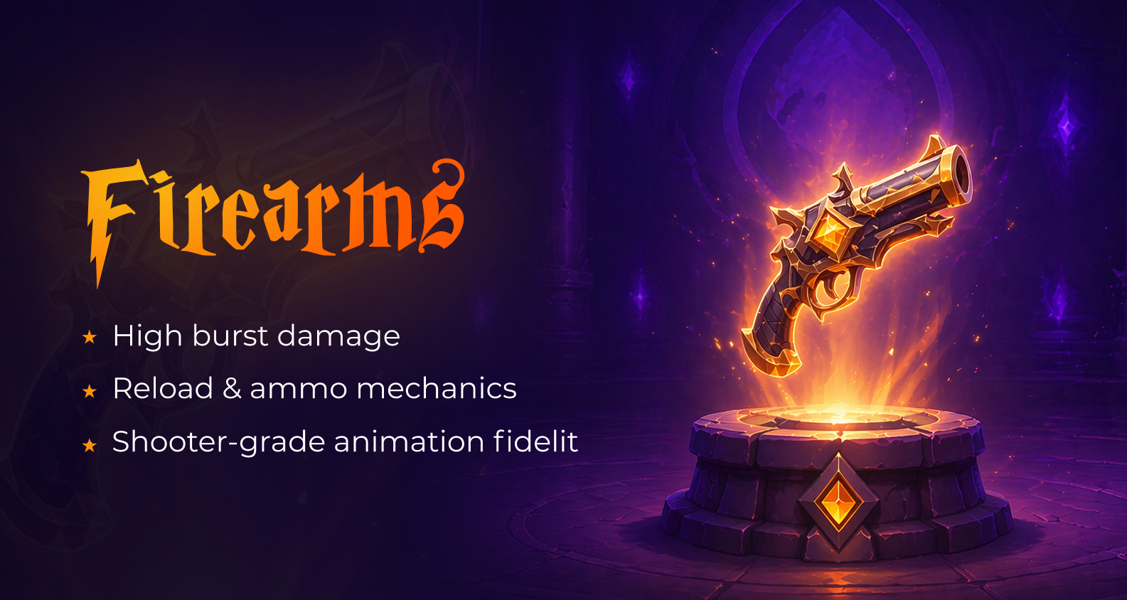 In modern, post-apocalyptic, and sci-fi RPG settings, firearms — pistols, rifles, shotguns, energy weapons — introduce mechanical expectations borrowed from action and shooter genres. Players bring prior experience to these weapons, which raises the baseline for feel and responsiveness.